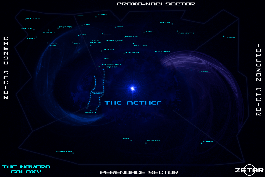 The Novera Galaxy, in its present state, is charted here with this galactic map. Planets are added with each new book release – sovereign territories like the Terran Alliance or the Mauridian Empire are excluded for general logistical purposes, though they can be found in book-specific maps where applicable.
